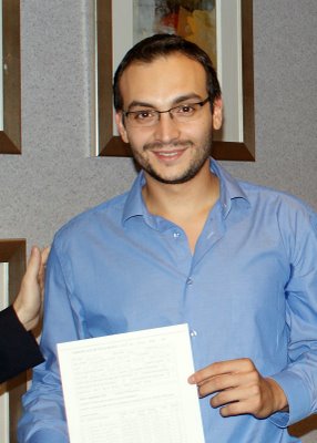 Le 4e championnat individuel de l’Union Européenne s’est achevé sur un heureux dénouement pour Thal Abergel (en photo avec son certificat) qui réalise sa 3e norme de grand-maître international d’échecs avec 1/2 point d’avance.