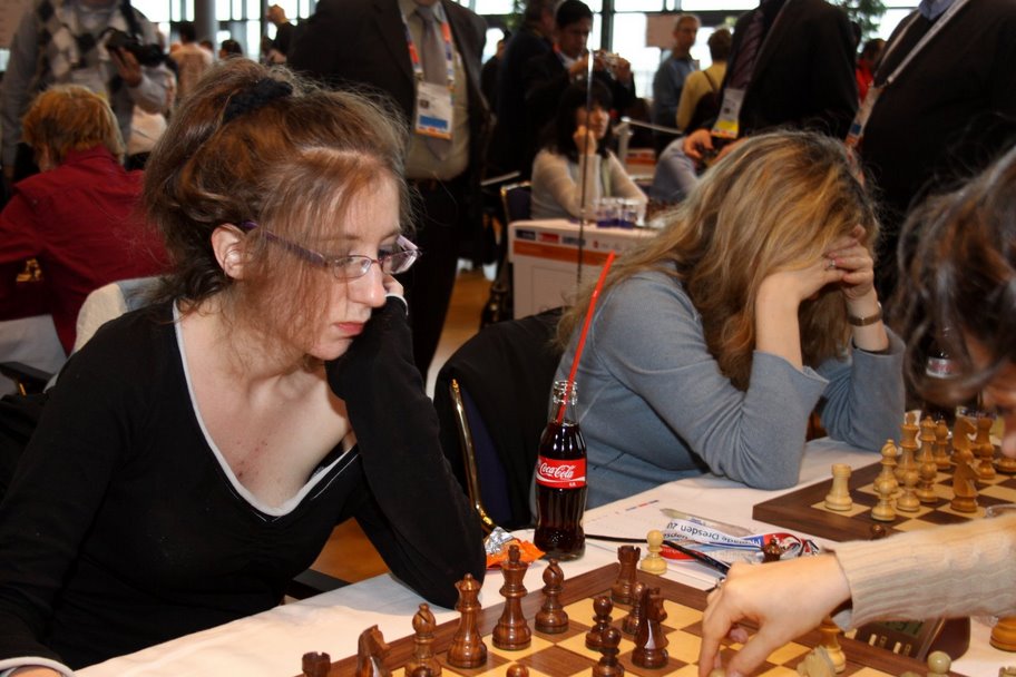 Marie Sebag gagne sa partie (avec un coca!) face à l’américaine Irina Krush